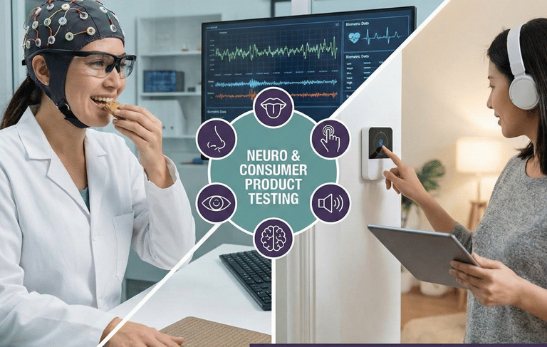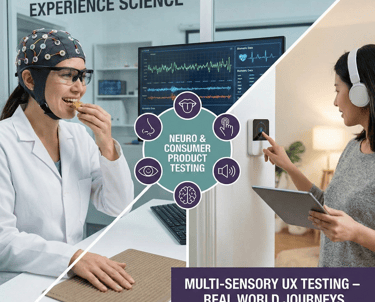 We run multi-sensory and UX testing to see how people actually perceive, feel, and behave – in the lab and in real journeys.